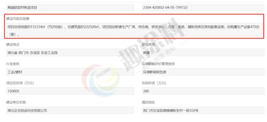 2024年6月15日,山東??菩虏牧嫌邢薰荆昙庸?萬噸高端鋁型材智能制造項目,進行企業(yè)投資項目備案。