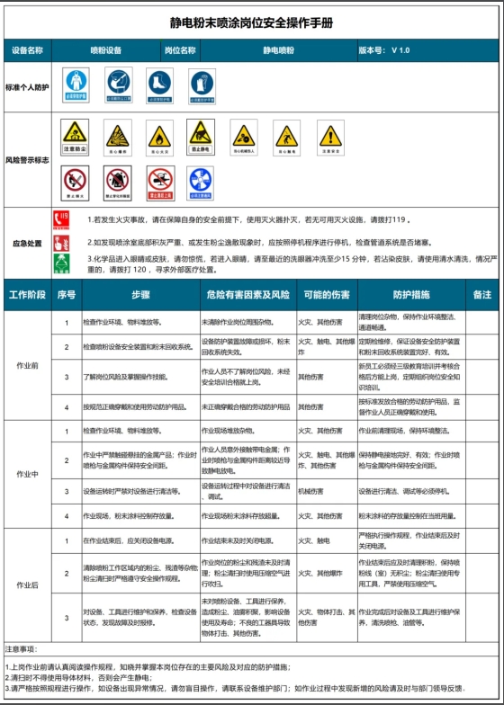 靜電粉末噴涂崗位安全操作“明白卡”