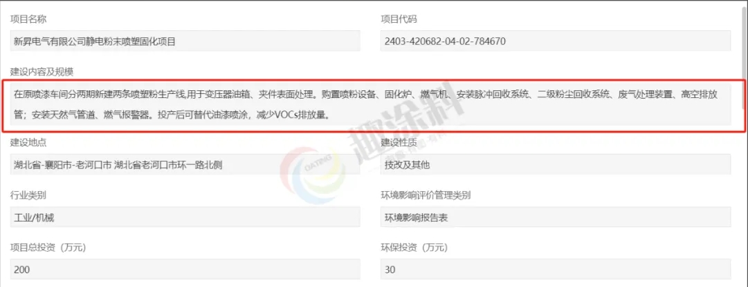2024年6月26日,新昇電氣有限公司,靜電粉末噴塑固化項(xiàng)目,在襄陽(yáng)市生態(tài)環(huán)境局老河口分局,進(jìn)行項(xiàng)目環(huán)評(píng)審批。