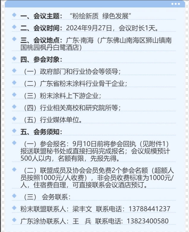 為了賦予廣東省粉末涂料產(chǎn)業(yè)更加蓬勃的生命力,加速新興生產(chǎn)動能的孵化與茁壯成長,推動該產(chǎn)業(yè)實現(xiàn)跨越式的飛躍發(fā)展,廣東省粉末涂料產(chǎn)業(yè)技術(shù)創(chuàng)新聯(lián)盟和廣東省涂料與油墨行業(yè)協(xié)會,兩大權(quán)威組織并肩作戰(zhàn),精心籌備,決定于2024年9月27日在廣東省佛山市南海區(qū)聯(lián)合主辦“2024年廣東省粉末涂料產(chǎn)業(yè)高質(zhì)量發(fā)展大會暨廣東省粉末涂料產(chǎn)業(yè)技術(shù)創(chuàng)新聯(lián)盟年會”。