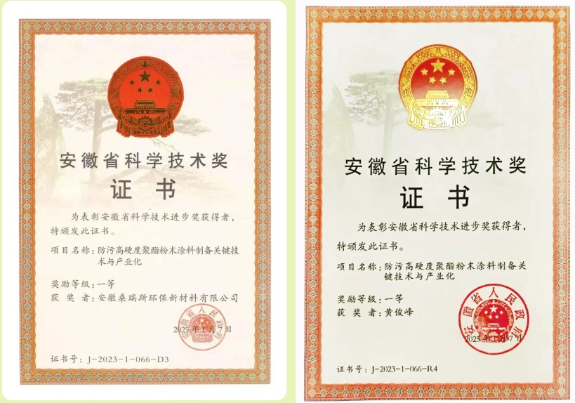 會(huì)上,安徽神劍新材料股份有限公司同安徽桑瑞斯環(huán)保新材料有限公司、安徽工程大學(xué)、江南大學(xué)共同合作研發(fā)的“防污高硬度聚酯粉末涂料制備關(guān)鍵技術(shù)與產(chǎn)業(yè)化”項(xiàng)目脫穎而出,榮獲安徽省科技進(jìn)步獎(jiǎng)一等獎(jiǎng)。