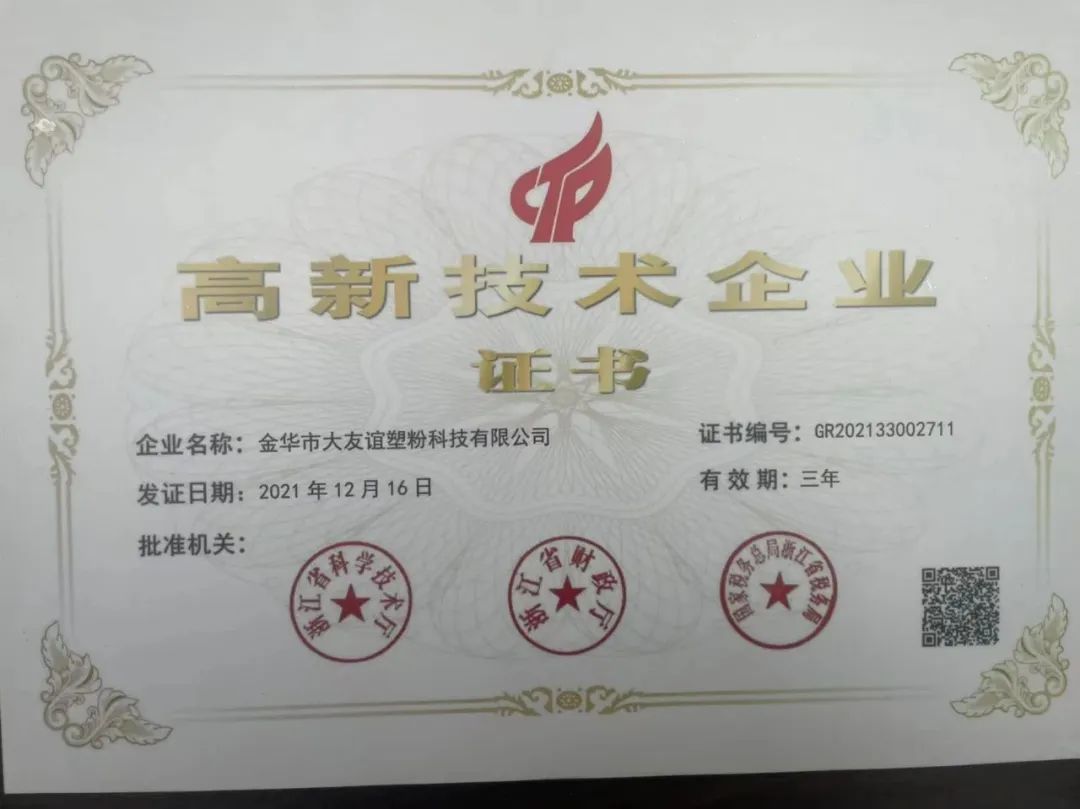 年年獲榮譽(yù)顯示出有關(guān)政府部門對(duì)大友誼塑粉研發(fā)和創(chuàng)新能力的認(rèn)可