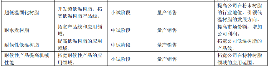 趣涂料(趣涂網(wǎng))了解到,企業(yè)根據(jù)市場、客戶需求和年度產(chǎn)品開發(fā)計劃,對相關(guān)產(chǎn)品進(jìn)行開發(fā),2022年中試定型多個產(chǎn)品,包括HAA固化低成本產(chǎn)品、TGIC固化低成本產(chǎn)品、在現(xiàn)有產(chǎn)品基礎(chǔ)上提高耐候性的產(chǎn)品以及戶外消光樹脂,已經(jīng)量產(chǎn)的產(chǎn)品有5個,戶內(nèi)產(chǎn)品共中試定型6個產(chǎn)品,已經(jīng)量產(chǎn)的產(chǎn)品有2個。江蘇睿浦成功開發(fā)了多款低溫固化、超耐候以及不含有機錫的產(chǎn)品,拓寬了產(chǎn)品的應(yīng)用領(lǐng)域,包括MDF板材、玻璃鋼、金屬合金、復(fù)合材料、工程機械等領(lǐng)域。