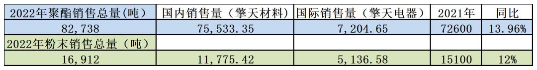 另外,中國(guó)電研聚酯樹脂2022年銷售量為8.27萬噸,同比增長(zhǎng)13.96%(其中擎天材料銷售量為7.55萬噸、擎天電器為0.72萬噸);同期,粉末涂料2022年銷售量為1.69萬噸,同比增長(zhǎng)12%(其中擎天材料銷售量為1.18萬噸、擎天電器為0.51萬噸)。