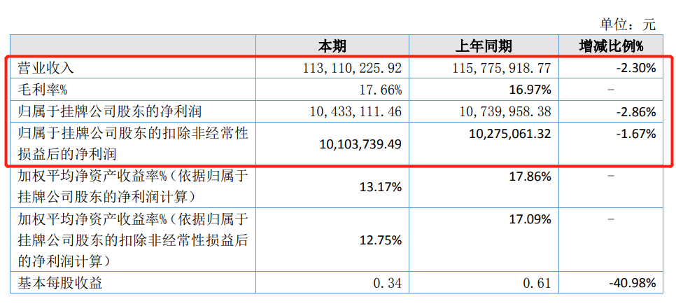 值得一提的是,經(jīng)過多年的發(fā)展,欣寶科技擁有長期穩(wěn)定的客戶群體,產(chǎn)品暢銷國內(nèi)國際市場(chǎng)。財(cái)報(bào)顯示,2023年欣寶科技實(shí)現(xiàn)營業(yè)收入1.13億元,同比下降2.3%;實(shí)現(xiàn)凈利潤1043.31萬元,同比下降2.86%;實(shí)現(xiàn)扣非后凈利潤1010.37萬元,同比下降1.67%。