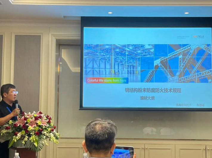 賽高粉末技術(shù)(濱州)有限公司總工程師張路鋒作CSCS《鋼結(jié)構(gòu)粉末防腐防火技術(shù)規(guī)程》報(bào)告。