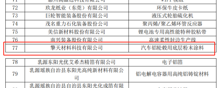 擎天材料產(chǎn)品質(zhì)量穩(wěn)定、序列豐富、行業(yè)美譽度高,聚酯樹脂產(chǎn)品是以“國家863計劃”科研成果為依托發(fā)展而來,鋁型材粉末涂料用聚酯樹脂、不含有機錫環(huán)保聚酯樹脂以及功能性聚酯樹脂等技術(shù)處于行業(yè)引領(lǐng)地位,年產(chǎn)量多年來位居國內(nèi)前五;研制生產(chǎn)的多個粉末涂料產(chǎn)品技術(shù)處于行業(yè)引領(lǐng)地位,獲評“廣東省名牌產(chǎn)品”、“中國粉末涂料十大特色產(chǎn)品”等殊榮。2022年,擎天材料持續(xù)鞏固優(yōu)勢領(lǐng)域的市場份額,輪轂底粉市場占有率超50%,并憑借著新產(chǎn)品,成功進入集裝箱、新能源等新領(lǐng)域,進一步擴大市場份額。