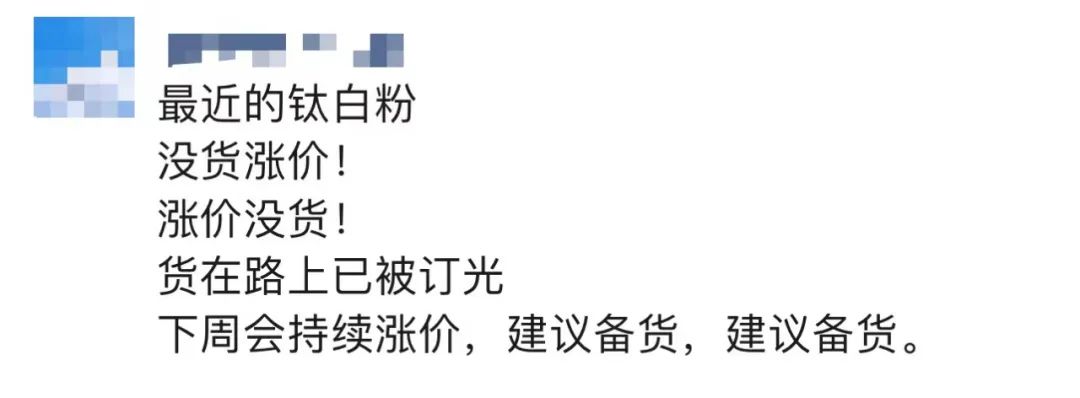 鈦白粉龍頭企業(yè)中核鈦白相關負責人表示,目前公司的鈦白粉產線已達滿產滿銷狀態(tài),產銷持續(xù)平衡,“如果市場價格走強,公司的鈦白粉產品出貨價也會隨之提漲,近期價格走高與市場供需出現(xiàn)緊張有一定關系?!?/p>
