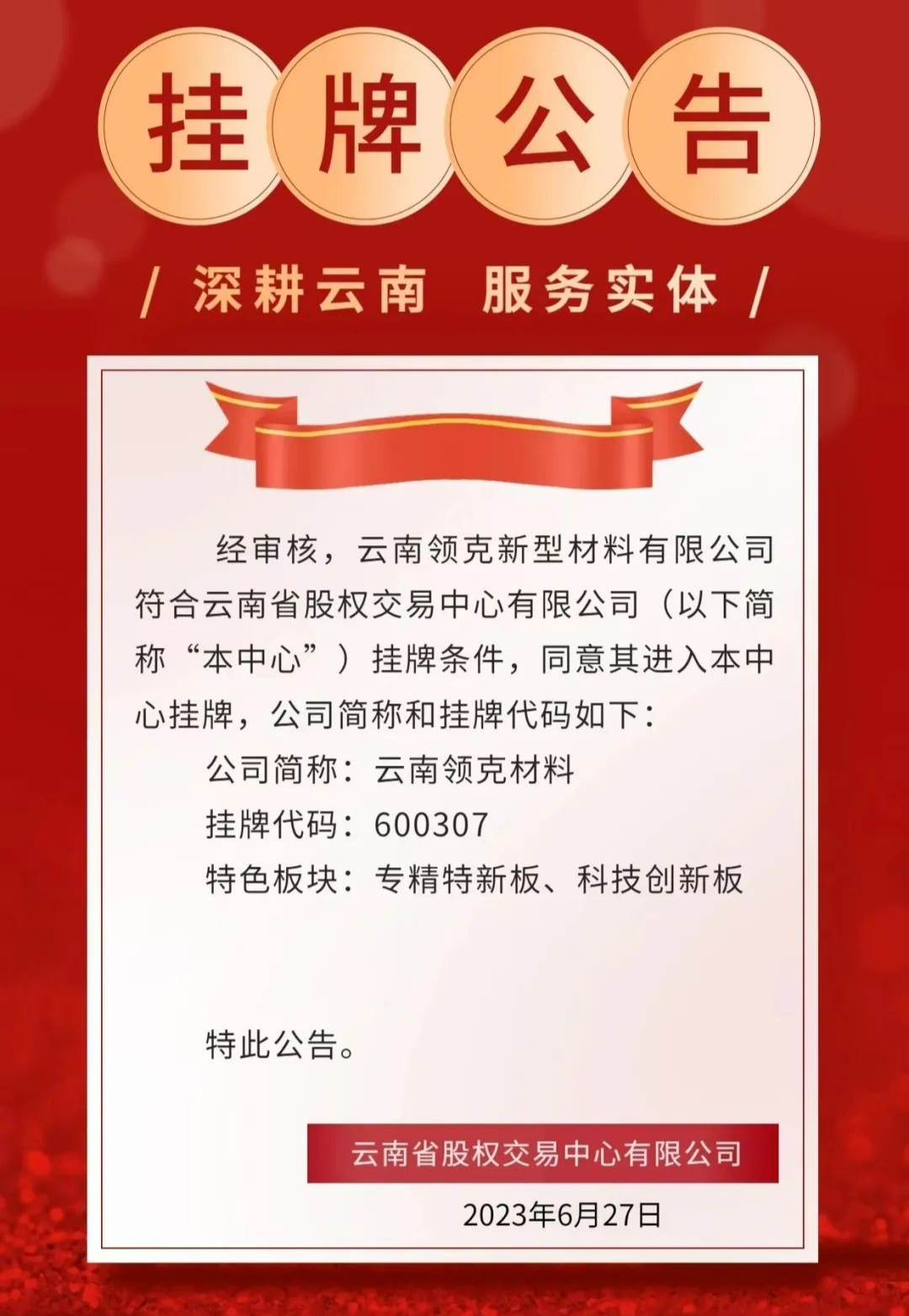 憑借著突出的研發(fā)實(shí)力、以及長(zhǎng)期深耕市場(chǎng)形成的優(yōu)勢(shì),云南領(lǐng)克在行業(yè)內(nèi)占據(jù)了領(lǐng)先的地位。今年6月27日,云南領(lǐng)克成功登陸云南股交中心科技創(chuàng)新板、專精特新板,掛牌代碼:600307。登陸這兩板塊,公司更是迎來(lái)了快速發(fā)展的黃金期,未來(lái)發(fā)展可期。