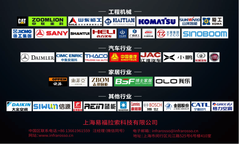 易福拉索憑借其先進(jìn)的技術(shù)優(yōu)勢(shì)和卓越品質(zhì)的產(chǎn)品,贏得了眾多領(lǐng)域客戶的認(rèn)可。其先后將產(chǎn)品成功應(yīng)用于汽車行業(yè)、工程機(jī)械、家具行業(yè)、食品行業(yè)、橡膠行業(yè)、玻璃行業(yè)和紡織等領(lǐng)域,并獲得長(zhǎng)城汽車、吉利汽車、北汽戴姆勒、中集安瑞科、中國(guó)重汽、卡特彼勒、三一重工、徐工集團(tuán)和中聯(lián)重科等知名企業(yè)的認(rèn)可。