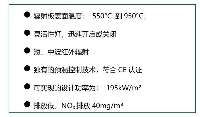 在先進(jìn)技術(shù)的支持之下,易福拉索成為一家專注于工業(yè)加熱應(yīng)用解決方案的優(yōu)秀工藝供貨商。其可以設(shè)計(jì)并提供各種天然氣紅外加熱系統(tǒng)、電紅外加熱系統(tǒng)、UV固化系統(tǒng)以及特殊工況的各種加熱烘箱的一體化系統(tǒng)解決方案。