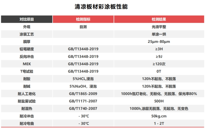 受益于技術開發(fā)的持續(xù)投入,清涼板材的產(chǎn)品品質(zhì)保持在較高水平,產(chǎn)品結構不斷升級優(yōu)化,并通過技術優(yōu)勢取得行業(yè)競爭地位。清涼板材相關負責人向趣涂料(趣涂網(wǎng))指出,“通過各項檢測數(shù)據(jù)對比,可以看出無論是物理性能、力學性能還是耐化學性能,粉末彩涂板優(yōu)于大部分傳統(tǒng)油漆彩涂板。”