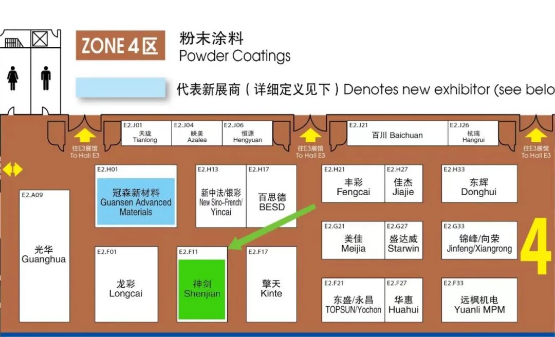 位于中國國際表面處理展(4區(qū)E2.F11展位)的神劍股份展區(qū)