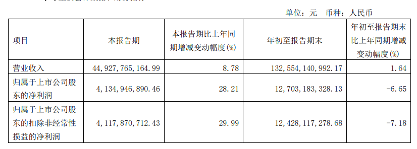 財報顯示,萬華化學(xué)2023年前三季度,其實(shí)現(xiàn)營業(yè)收入1325.54億元,同比增長1.64%;歸母凈利潤為127.03億元,同比下降6.65%;扣非歸母凈利潤124.28億元,同比下降7.2%。
