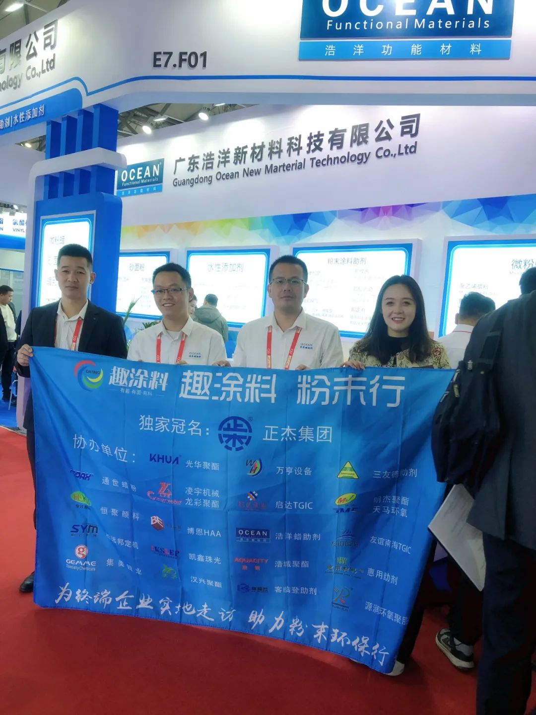 浩洋創(chuàng)建于2017年是一家以研發(fā)、生產及銷售涂料油墨用蠟類添加劑為主的科技型企業(yè),年產銷微粉蠟及蠟類衍生品約5000噸。本屆展覽會,浩洋攜微粉蠟、消泡劑、疏松劑等產品盛裝亮相,助力于解決粉末行業(yè)的增硬耐磨,脫氣消泡,疏松綁定等難題。重點展示了高光無霧影蠟粉、高硬度砂紋增硬劑、可絲印打膠微粉蠟、非蠟基消泡劑、鎂鋁合金消泡劑、高光厚涂消泡劑、高效疏松綁定劑等產品。