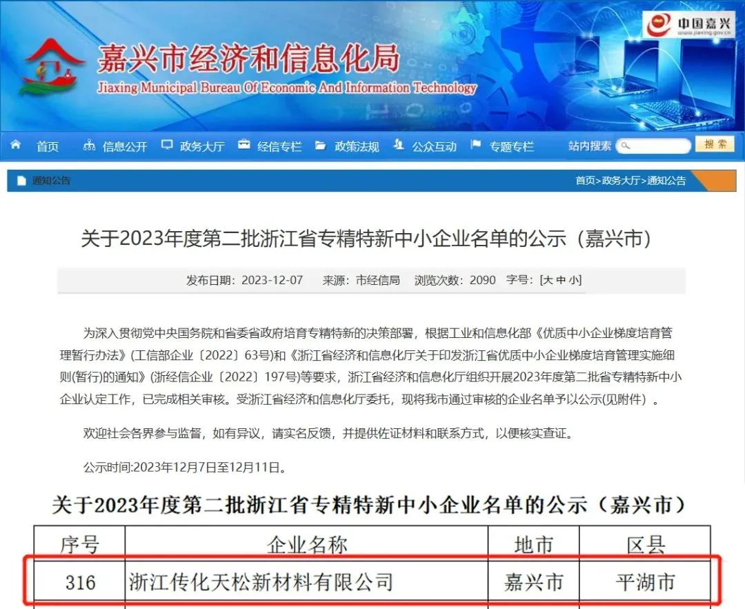 日前,受浙江省經(jīng)濟(jì)和信息化廳委托,嘉興市經(jīng)濟(jì)和信息化局發(fā)布《關(guān)于2023年度第二批浙江省專精特新中小企業(yè)名單的公示(嘉興市)》文件。