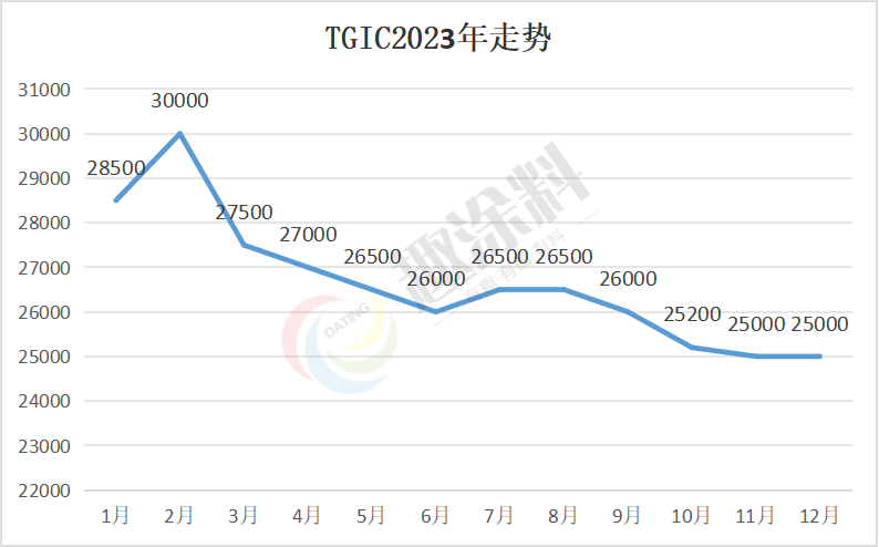 當(dāng)前TGIC行業(yè)產(chǎn)能過剩問題明顯,但實(shí)際需求不振,導(dǎo)致行業(yè)出現(xiàn)價格戰(zhàn)。2022年TGIC最高價達(dá)52000元/噸,而2023年最高價只在30000元/噸,這還是受年初疫情放開國內(nèi)商品情緒好轉(zhuǎn)疊加春節(jié)前備貨需求的影響,TGIC價格跟隨成本上漲。但年后回來需求復(fù)蘇不及預(yù)期疊加新產(chǎn)能增加,TGIC價格承壓下行。2023年TGIC最低達(dá)到25000元/噸,TGIC降價明顯。TGIC企業(yè)利潤已經(jīng)在底部運(yùn)行,因此2024年市場即使延續(xù)弱勢,也不會出現(xiàn)深度下行的情況。但當(dāng)前依然看不到需求好轉(zhuǎn)的趨勢,TGIC行業(yè)也無法確實(shí)性轉(zhuǎn)好。