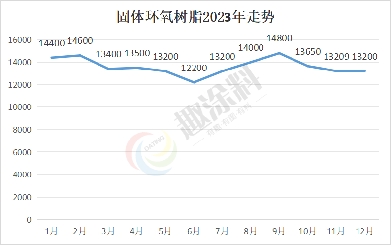 與2022年相比,2023年環(huán)氧樹脂全年波動較小。年初為14400元/噸,年末為13200元/噸,相差1200元/噸。另外,年底最高價和最低價約相差2600元/噸,而2022年最高價和最低價約相差9000元/噸。這也從側(cè)面反應(yīng)出2023年下游采買積極性有限,僅維持剛需跟進(jìn)。