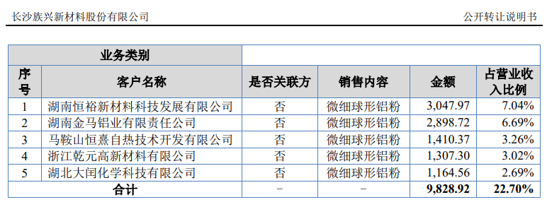 此外,2023年1月—8月前五名銷售客戶分別為:湖南恒裕新材料科技發(fā)展有限公司、湖南金馬鋁業(yè)有限責任公司、馬鞍山恒熹自熱技術開發(fā)有限公司、浙江乾元高新材料有限公司和湖北大閏化學科技有限公司。