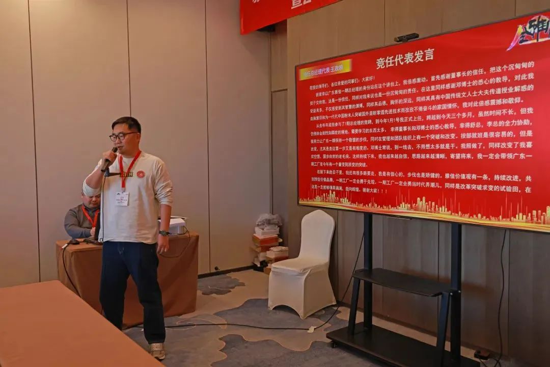 在本次會議上,雅佳集團(tuán)一期的競?cè)慰偨?jīng)理王政喨發(fā)表了激動人心的講話。他欣喜地宣布,今年廣東一期粉末涂料銷量創(chuàng)下了新高,這一成績標(biāo)志著我們?nèi)〉昧孙@著的突破和提升。