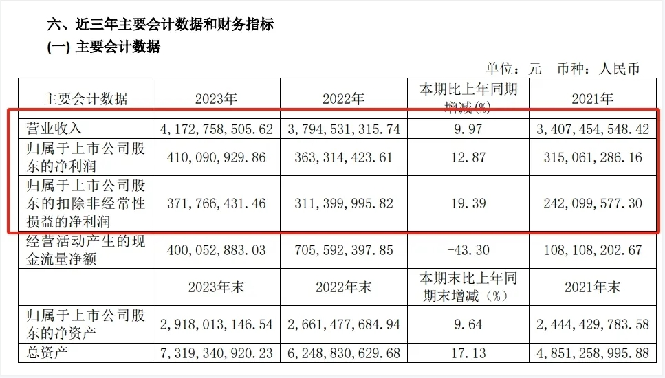 年報中指出,中國電研2023年實現(xiàn)營業(yè)收入41.73億元,同比增長9.97;實現(xiàn)凈利潤4.1億元,同比增長12.87%;實現(xiàn)扣非后凈利潤3.72億元,同比增長19.39%。
