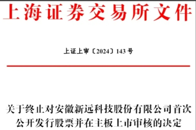 6月21日,上交所網(wǎng)站對(duì)外發(fā)布關(guān)于終止對(duì)安徽新遠(yuǎn)科技股份有限公司(以下簡(jiǎn)稱(chēng)“新遠(yuǎn)科技”)首次公開(kāi)發(fā)行股票并在主板上市審核的決定。