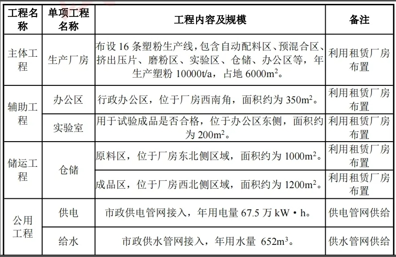 ②建設項目:年產1萬噸塑粉生產項目