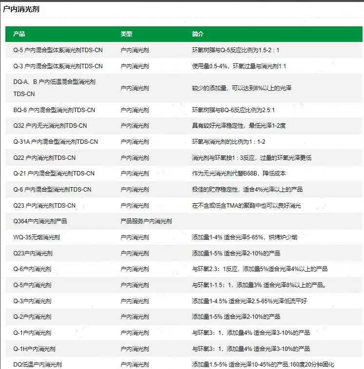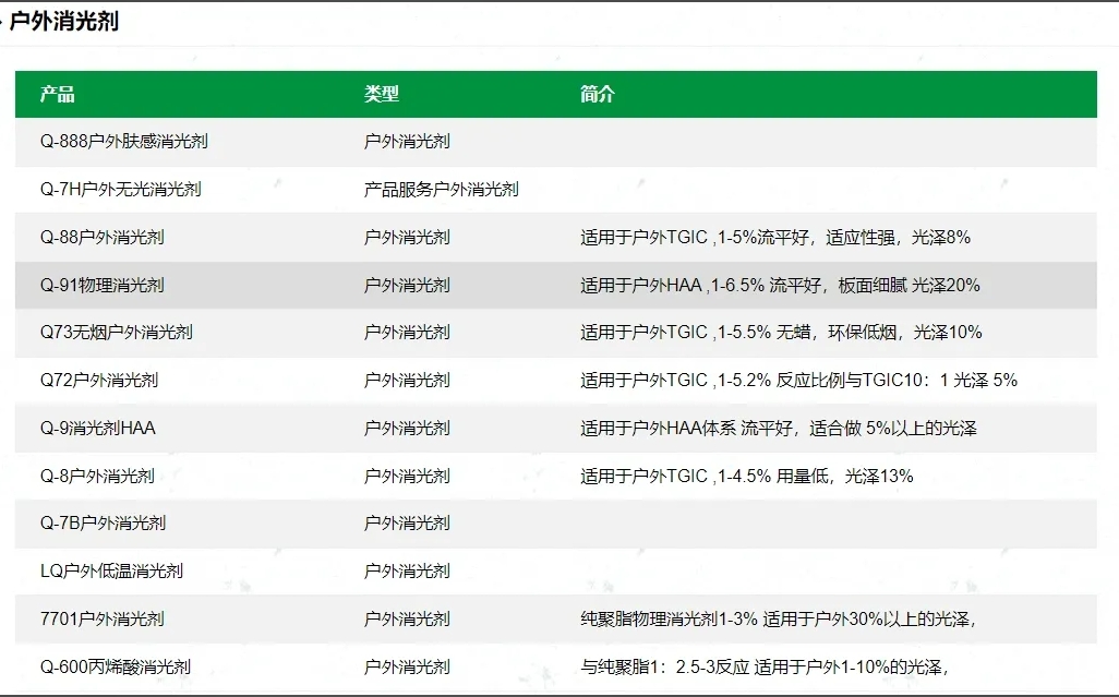 這款消光劑不僅具有綠色環(huán)保的特點(diǎn),還能助力客戶實(shí)現(xiàn)涂料成本優(yōu)化與性能提升的雙重目標(biāo),它適用于6:4或5:5等多種聚酯配比,能夠輕松實(shí)現(xiàn)消光效果,同時(shí)保證涂層表面平坦、色澤持久且不易黃變。選擇Q-23消光劑,就是在選擇一種高性價(jià)比的戶內(nèi)配方設(shè)計(jì),讓您在追求涂料性能的同時(shí),也能享受到綠色節(jié)能的生產(chǎn)方式。