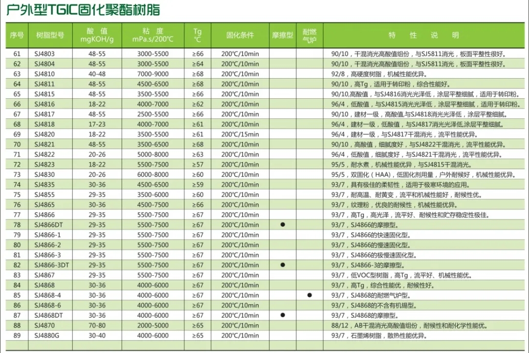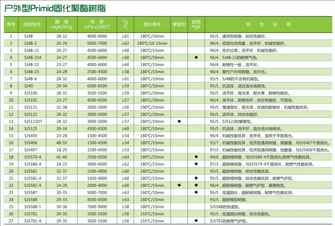 一、化工新材料制造,即粉末涂料專用聚酯樹脂系列產(chǎn)品及其原材料的研發(fā)、生產(chǎn)和銷售,現(xiàn)有年產(chǎn)各類聚酯樹脂21.5萬噸的生產(chǎn)能力。產(chǎn)品包括戶內(nèi)、戶外、PU聚酯等三大系列200多只產(chǎn)品,滿足不同用戶需求,產(chǎn)品暢銷全球。神劍聚酯樹脂系列產(chǎn)品長期為阿克蘇諾貝爾、PPG、艾仕得、海爾、老虎、佐敦、威士伯、桑瑞斯、嘉多彩等高端客戶提供配套服務(wù),市場份額名列前茅。
