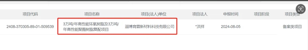 近日,淄博育霖新材料科技有限公司,3萬噸/年高性能環(huán)氧樹脂及3萬噸/年高性能聚酯樹脂復配項目,申請項目備案。