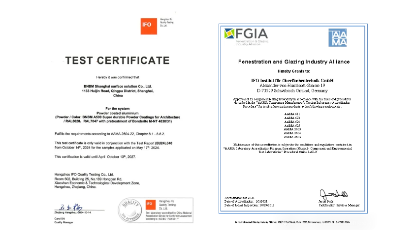 AAMA全稱美國(guó)建筑制造商協(xié)會(huì),成立于1962年,1972年通過(guò)美國(guó)國(guó)家標(biāo)準(zhǔn)學(xué)會(huì)認(rèn)可,主要應(yīng)用于門窗幕墻行業(yè),在美國(guó)市場(chǎng)、亞洲和中東比較活躍,全球范圍內(nèi)大約有400多個(gè)會(huì)員單位。該測(cè)試作為門窗幕墻行業(yè)最為核心的測(cè)試標(biāo)準(zhǔn)之一,對(duì)建材產(chǎn)品的耐候性、耐腐蝕性、顏色持久性等關(guān)鍵性能指標(biāo)有著極高的要求。此次龍牌A500能夠順利通過(guò)AAMA 2604-22標(biāo)準(zhǔn)的測(cè)試,是對(duì)北新粉末技術(shù)實(shí)力和產(chǎn)品質(zhì)量的有力證明。