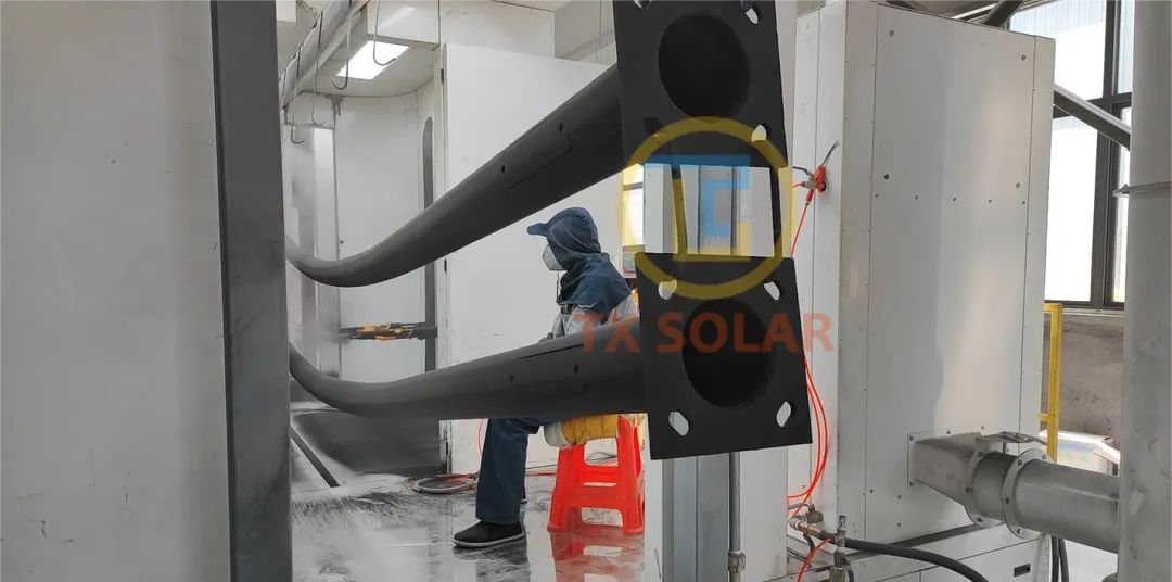 天祥電氣使用后對此也是深有體會,“ 燈桿經(jīng)過拋丸機(jī)處理后,有效清除燈桿表面的銹跡,使得燈桿表面平整光滑,噴塑時(shí)涂層更加均勻,塑層附著力強(qiáng)。另外,公司的噴塑系統(tǒng)可以提供多種顏色供客戶挑選,根據(jù)客制化訂單定制塑粉顏色。智能噴槍出粉均勻,桿件上粉無死角,塑層質(zhì)量穩(wěn)定。”